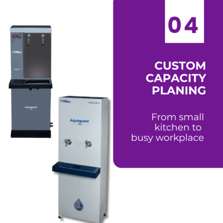 Compact and efficient, ideal for high-footfall zones. Built with RO+UV purification to ensure every drop is safe and mineral-balanced.